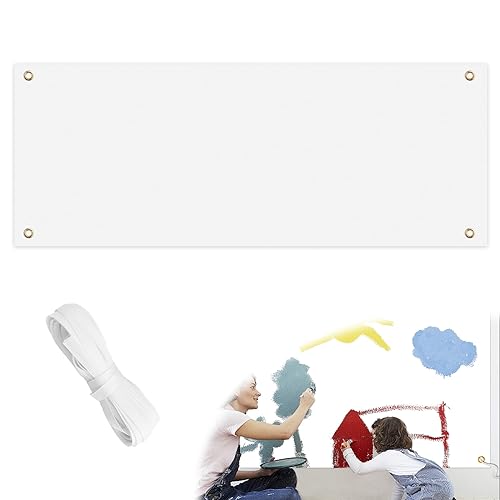 Striscione Personalizzato, PARFCO 120 x 60 cm Striscione Buon Compleanno, con Corda da 6 M, Graffiti DIY Disponibili, Vuoto Striscioni Personalizzati per Feste, Ufficio, Ristorante