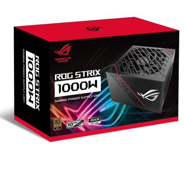 ASUS ROG STRIX 1000W Gold (16-pin cable). Potenza totale: 1000 W, Tensione di ingresso AC: 100 - 240 V, Potenza combinata (+3.3V): 125 W. Connettore scheda madre: 20+4 pin ATX, Lunghezza del cavo di alimentazione della scheda madre: 61 cm, Lunghezza del cavo di alimentazione SATA: 400,120,410,150 mm. Utilizzo: PC, Certificazione 80 PLUS: 80 PLUS Gold, Tecnologia dei cuscinetti: DBB. Colore del prodotto: Nero, Tipo di raffreddamento: Attivo, Diametro del ventilatore: 13,5 cm. Cavi inclusi: CPU, PCIe, SATA, Peripheral (Molex)