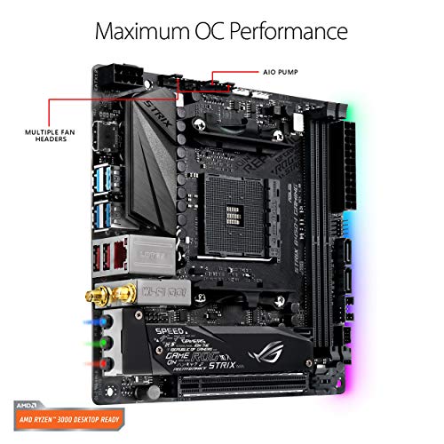 ASUS ROG STRIX B450-I Gaming Scheda Madre AMD B450 ITX con Supporto DDR4 a 3600 MHz, SATA 6 Gbps, 802.11ac Wi-Fi, HDMI 2.0, Doppio M.2, USB 3.1 Gen 2, Dissipatore M.2 e Illuminazione LED Aura Sync RGB