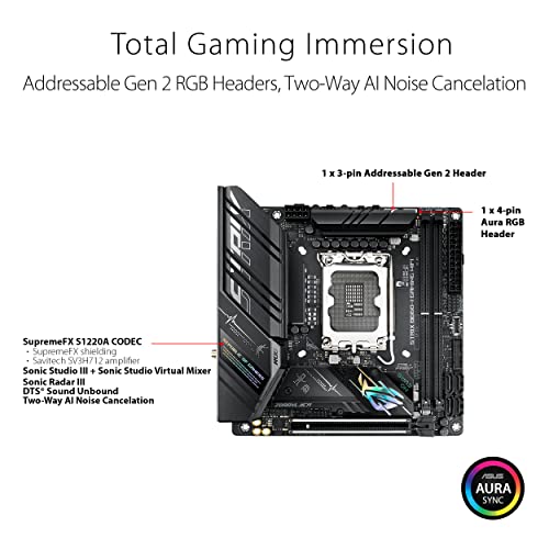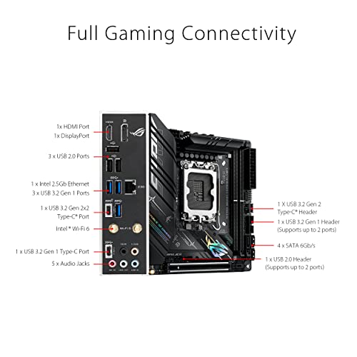 ASUS ROG Strix B660-I Gaming WiFi Scheda Madre mini-ITX, Intel B660, LGA1700, DDR5, PCI 5.0, LAN Intel I225-V 2.5Gb, WiFi 6, ROG SupremeFX 7.1 Surround, 2xM.2, 4xSATA 6GB/s, USB 3.2 Gen 2x2