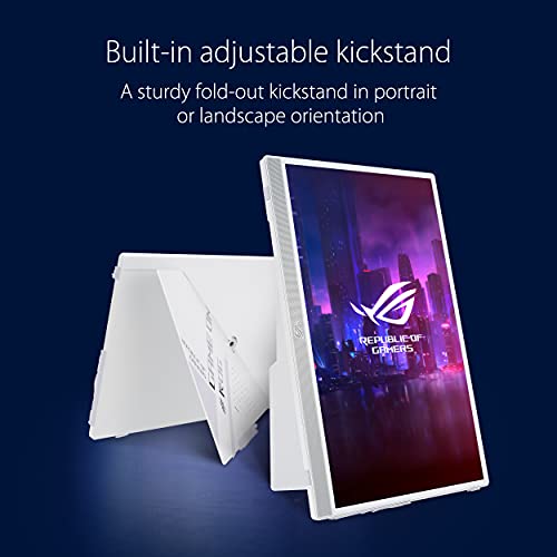 Asus ROG Strix XG16AHP-W Portable Gaming Monitor 15.6" FHD 144Hz IPS NVIDIA G-SYNC compatibile, batteria 7800mAh, fold-out kickstand, USB Type-C, microHDMI, embedded ESS amplifier,ROG Tripod e sleeve