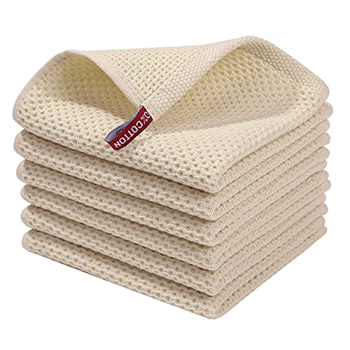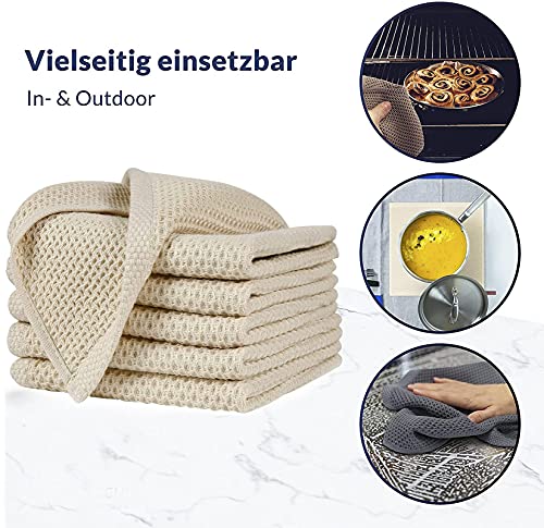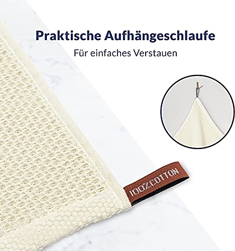 GION Strofinacci da cucina in cotone a nido d'ape, set di asciugamani assorbenti, strofinacci da cucina con laccetto, 34 x 34 cm, confezione da 6 (beige)