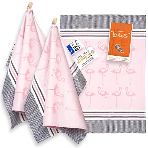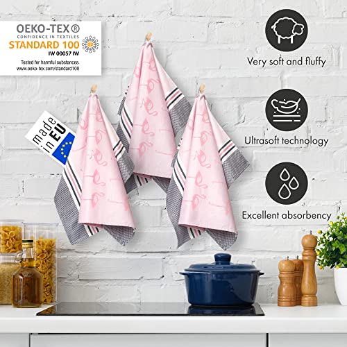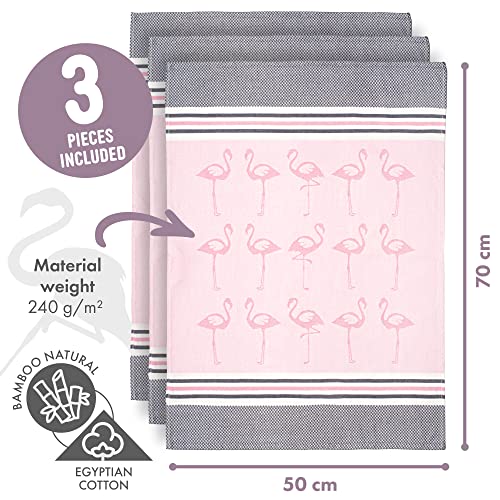 Strofinacci da Cucina in Cotone set di 3 Pezzi in Cotone Egiziano - Accessori da Cucina Perfetti per la Cucina - Panni da Cucina cotone con Motivo a Fenicottero - Proprietà Antibatteriche