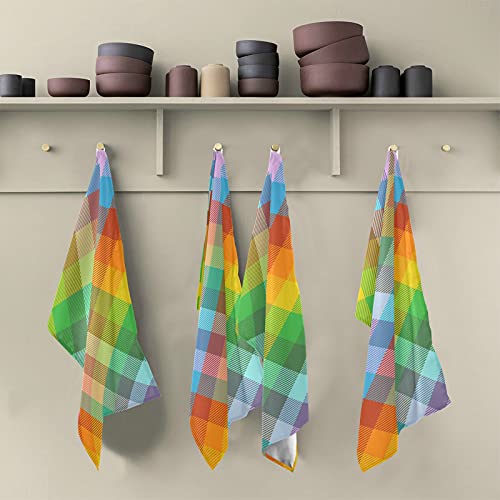 Strofinacci da cucina Set 4 Madras Plaid Pattern Rainbow Spectre Tutti gli strofinacci da cucina grandi 28 '' x18 '' strofinacci da cucina, strofinacci, strofinacci decorativi, strofinacci, strofina
