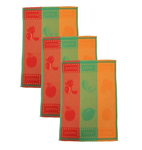 Betz Set di 3 Strofinacci Italy 100% Cotone Motivo Frutti Misure 50x70 cm Colore Arancione