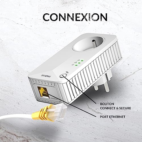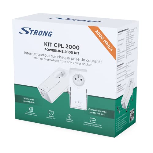 STRONG Confezione da 2 prese CPL da 2000 Mbps, presa filtrata e porta Ethernet, compatibile con box internet, ideale multi TV, streaming HD, nessuna configurazione, pronta all'uso