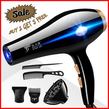 Buy 1 Get 5 Strong Electric Hair Dryer, Blue Light Silent Anion Hair Dryer, Cold and Heat Regulating Air High Power Hair Dryer