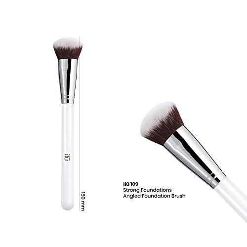 T4B ILU 109 Strong Foundations Angled Foundation Brush Cruelty Free Pennello Angolato per Applicare Fondotinta, Contouring, Blush, Creme, Polveri, Colore Bianco e Argento