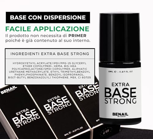 Base Strong 8 ml. Semipermanente Unghie con Dispersione, Base Gel Unghie per Smalto Semipermanente, Resistente e Elastica per Gel Ricostruzione Professionale, Acrygel