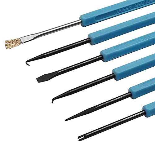 Strumenti ausiliari per Saldatura - 6 Confezioni Kit di aiuti per Saldatura in Metallo Circuito Stampato Set di Strumenti di Saldatura precisi Pennello Raschietto Forcella Gancio Punteruolo(Blu)