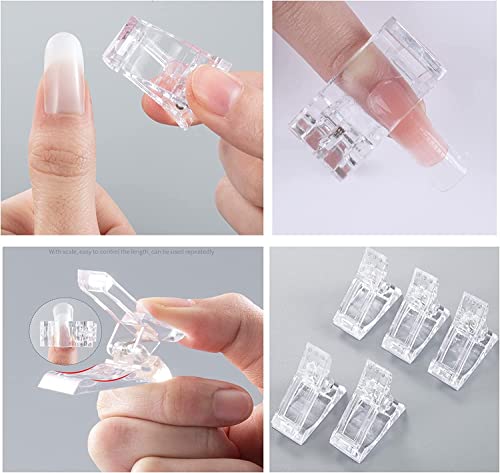 Set di Strumenti per l'estensione Unghie, 120 Pezzi Forma Curva a Gel Trasparente Stampo con Scala Graduata, 10 Pezzi Cliptrasparente per unghie, 1 Pezzi Doppia Estremità Pennello