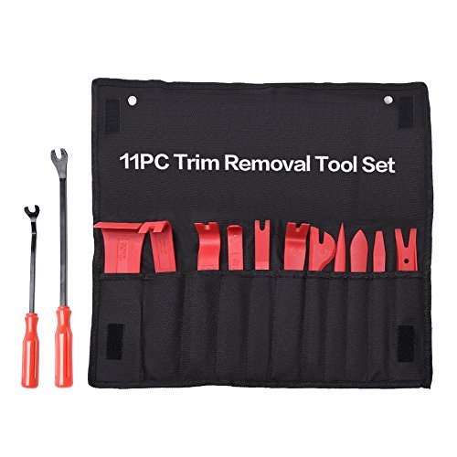 Multifunzione: 13 diversi tipi di attrezzi per la rimozione di componenti auto, eccellenti per rimuovere l'autoradio o le guarnizioni delle portiere, dei finestrini, degli accessori interni e anche per rimuovere gli pneumatici della bicicletta. 11 pezzi resistenti agli urti in fibra di nylon, 2 clip da rimozione in metallo.