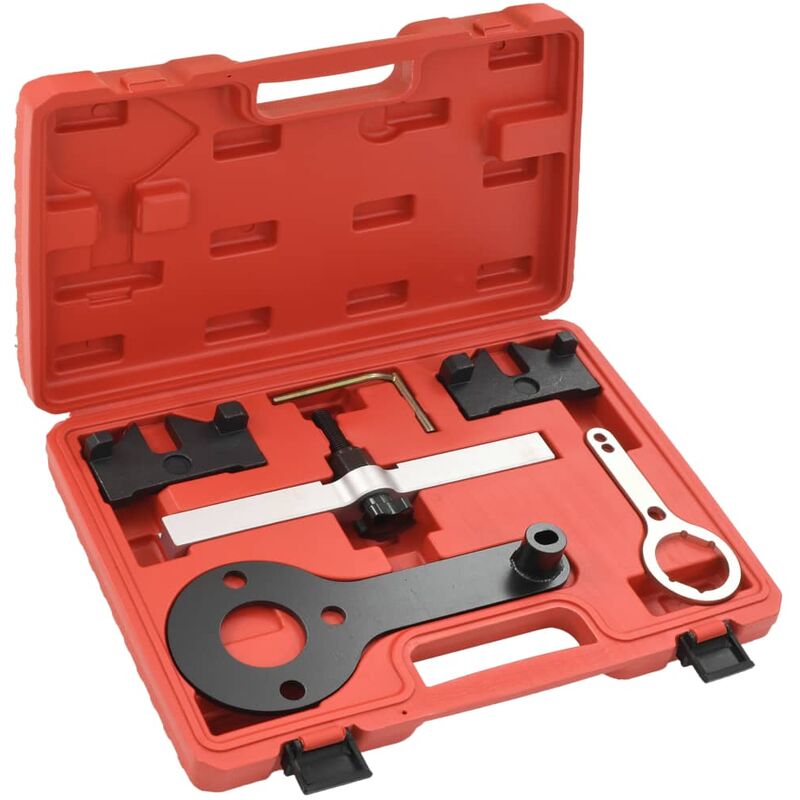 Materiale: Acciaio Consegnato in una custodia modellata ad aria Adatto per motori (ad esempio): N63 V8 Adatto per modelli BMW: BMW F01 / F02: 750i / 750 Li / xDrive (fino al 2012) BMW E70 / E71 / E72: X5 xDrive50i, X6 xDrive50i, X6 ActiveHybrid BMW F07: 550i Gran Turismo (fino al 2011) BMW F10 / F11: 550i (fino al 2011) BMW F12 / F13: 650i cabriolet e coupé (fino al 2012) Adatto per codice motore: N63B44 Paragonabile al numero originale BMW: Attrezzo di bloccaggio dell'albero motore (come per OEM 118570/119190) Bullone centrale dell'albero motore (come per OEM 118090) Attrezzo di bloccaggio dell'albero a camme (come per OEM 119890) Vite zigrinata (come per OEM 119891) Barra di pressione (come per OEM 119892) Calibro a cricchetto per albero a camme di aspirazione e scarico (come per OEM 119893) Distanziali (come per OEM 119894) Numeri di parti originali e numeri del produttore sono solo a scopo di confronto La consegna include: 2 Attrezzi di allineamento dell'albero a camme 1 Perno del