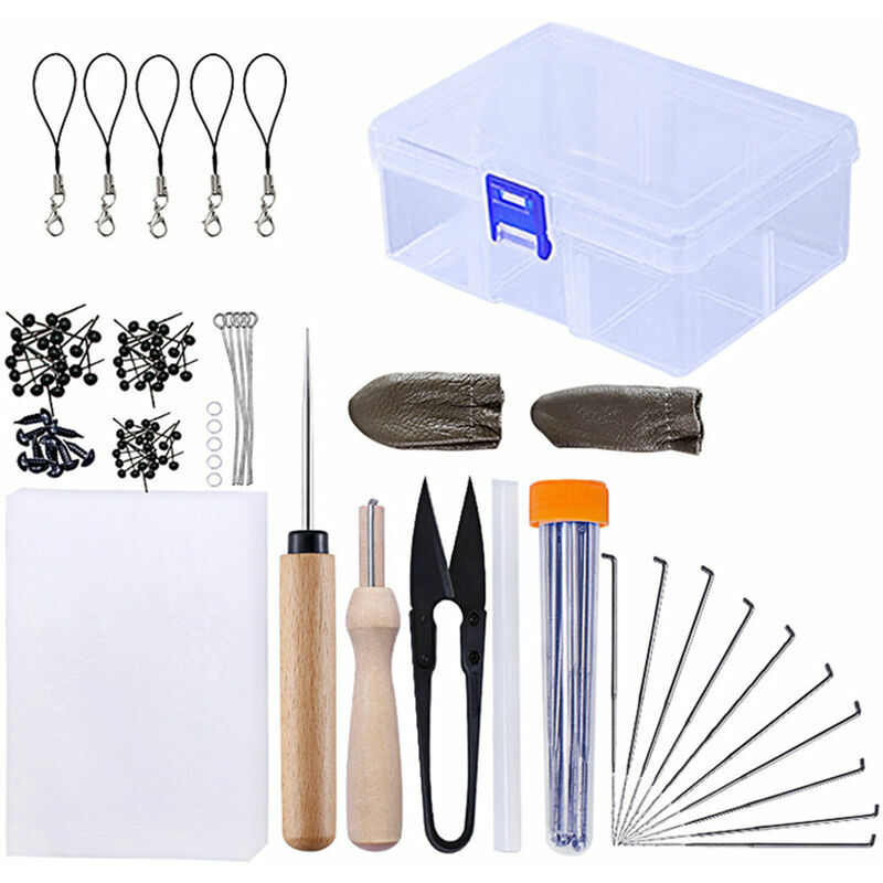 Strumenti per feltrare tra cui 23 x aghi, 1x20 paia x 2mm perline, 1x20 paia x 3mm perline, 1x20 paia x 4mm perline, 10 x Vite, 2 x dita in pelle, 1 x Mat foam, 1x bottiglia di stoccaggio, 5x5 x lunghi, piccoli anelli di chiavi, 1 x manico in legno, 1 x Punch, 1 x taglio, 1 x bastoncino di plastica. Tratti: 1. È adatto per l & #39 feltro;