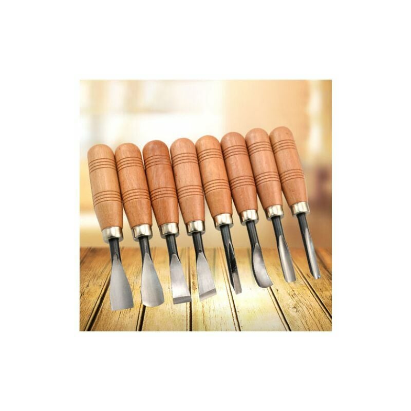 Kit per intaglio del legno da 8 pezzi: molto adatto per radici e sculture in legno facili e dettagliate. Un regalo ideale per principianti e professionisti dell'intaglio del legno. Materiale: lama in acciaio al manganese, affilata e resistente all'usura, manico in legno di faggio solido, liscio e resistente, impugnatura antiscivolo, presa comoda. Confezione personalizzata: il design diviso rende pulito qualsiasi scalpello. Quantità di consegna: 8 * strumenti per intagliare