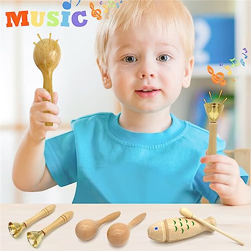 Strumenti musicali multipli: Il set di giochi per bambini è perfettamente funzionante, include 2 nacchere, 2 uova shaker, 1 tamburo, 1 pesce di legno, 1 agitatore manuale, 2 campanelli da slitta, 2 maraca, 1 cilindro sonoro, si installa senza l'uso di attrezzi, rendendolo il perfetto set di strumenti musicali per mini band!