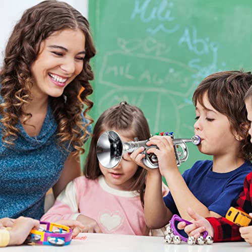 Set di 2 Strumenti Musicali Includi Giocattolo Tromba e Set di Giocattolo Sassofoni Giocattolo Educativo di Tromba Plastica Regalo di Musica per Casa, Finitura Argento con Tasti Colorati