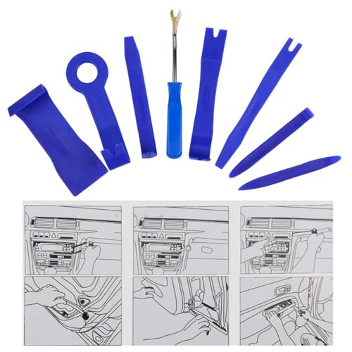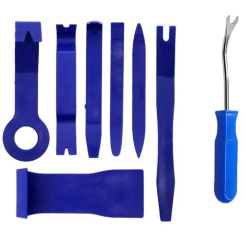 Kit di strumenti per la rimozione dell'assetto automatico da 8 pezzi, Strumento per cunei interni automobilistici a leva, Pannello clip per porta auto per auto Audio Video Cruscotto Kit,Blu