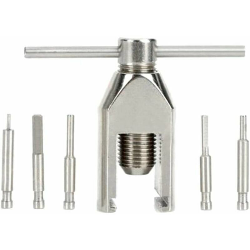 Come usare - Scegli la matrice da tirare, collega la leva di rotazione, stringi le viti (Nota: ci sono alette con piattaforma, le viti non devono essere serrate eccessivamente) Ambito di applicazione: è possibile tirare ingranaggi con un diametro esterno massimo di 11 mm e un'altezza del dente inferiore a 12 mm. Facile da usare: aggancia il motore alla tavola da nuoto e spostalo per tirare il ditale allineato con l'albero del motore, ruota la leva attiva in senso orario in senso orario, rimuovi l'ingranaggio dal motore. Come utilizzare l'ingranaggio estrattore: 1) Selezionare gli aghi in base al diametro dell'ingranaggio dell'albero motore. Non utilizzare un ago troppo piccolo per spingere contro un motore con un albero di grande diametro per tirare l'ingranaggio, altrimenti il capocorda si romperà. L'ingranaggio incollato deve prima essere riscaldato per sciogliere la colla. Prova di nuovo l'estrazione del dente! 2). Scegli il ditale dell'estrattore che ti serve, installalo