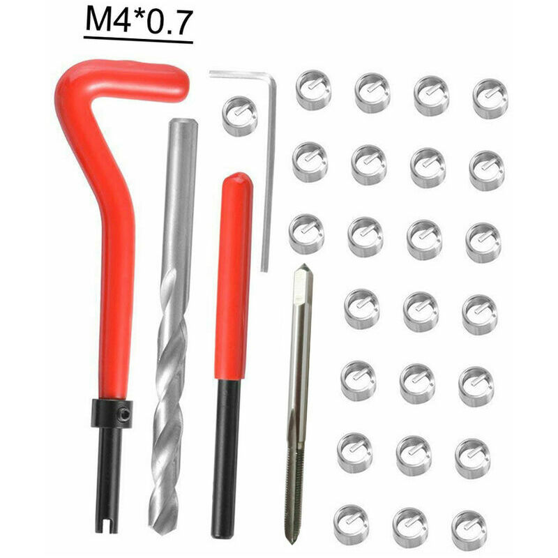 Caratteristiche: Questo kit di riparazione della filettatura è la soluzione perfetta per un foro maschiato danneggiato o spanato. Adatto per M4, crea una filettatura interna più forte nei metalli teneri e protegge le filettature da usura e danni. Questo kit di riparazione include installazioni di inserti, inserti filettati, punte elicoidali, rubinetti, attrezzi per rompere le alette. Con una custodia, comoda da riporre e trasportare, puoi raccogliere ed estrarre facilmente e rapidamente. Realizzato in materiale di alta qualità, affidabile e durevole per un uso prolungato. Specifica: Materiale: acciaio Colore: argento Filo Quantità: 25 Dimensioni confezione: 18* 12 * 3 cm / 7,09 * 4,72 * 1,18 pollici Peso confezione: 150 g / 5,29 once strong> 1 * Kit di inserti per la riparazione di file tage metrico (come esposizione dell'immagine)