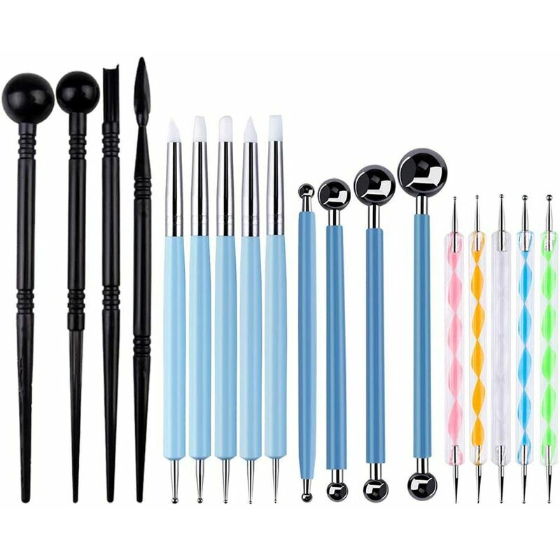 Strumenti a doppia punta: ogni strumento di argilla ha una penna a doppia punta. Ogni testa non ha le stesse dimensioni. Contenuto della confezione: 5 strumenti in plastica + 5 penne in gomma + 4 penne a sfera + 4 strumenti per modellismo + 4 strumenti per ceramica. Strumenti a pois: tutte le sfere sono realizzate in acciaio inossidabile. Diametro dei kit di utensili a doppia faccia: circa 4 mm, 6 mm, 8 mm, 9,5 mm, 11 mm, 13 mm, 16 mm, 19 mm. Perfetto per argilla, progetti artistici, sculture e altri progetti artigianali. SUGGERIMENTI IN GOMMA DI SILICONE: la penna è lunga circa 5,5 ", lunga 1/4", punta affusolata con punta morbida, scalpello ad angolo, taglio rotondo, scalpello a tazza, scalpello piatto, punta affusolata con impugnatura in plastica, liscia, comoda da impugnare. Eccellente per la modellatura del colore, la fusione artistica e il ritocco dei dettagli. Penna in plastica: è necessaria una leggera pressione per ottenere linee morbide in argilla o goffratura su carta