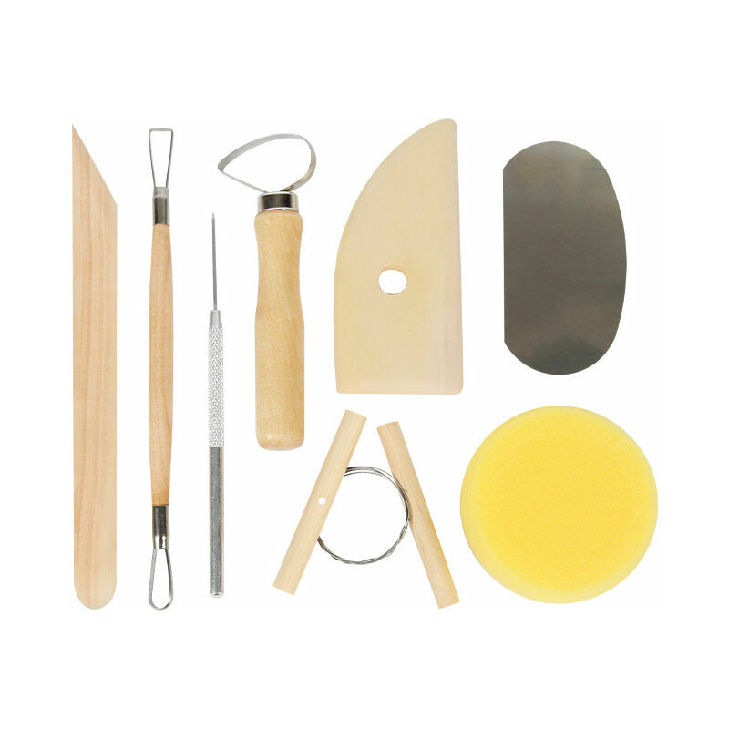 Set di strumenti per l'argilla: un set di 8 diverse forme di strumenti per scolpire l'argilla. Gli 8 strumenti includono: strumenti per modellare, strumenti a nastro, strumenti per collare, nervature di ceramica, cazzuole di metallo, raschietti di metallo, strumenti di agopuntura e spugne Materiali di alta qualità: strumenti di argilla per parti in ceramica di alta qualità in acciaio e legno duro. La punta liscia finemente lucidata è comoda, resistente e può essere utilizzata a lungo Durabilità: i materiali degli strumenti per intagliare il legno sono durevoli e dal design semplice. Il manico in legno è realizzato in legno massello e la superficie liscia è facile da pulire. Il metallo resistente alla corrosione degli strumenti in ceramica è forte e curvo, non facile da rompere Molteplici opzioni: include 8 strumenti per scolpire l'argilla per vari scopi che possono essere utilizzati per rimuovere impronte digitali e macchie dalla superficie di lavoro, rimuovere il fango in eccesso