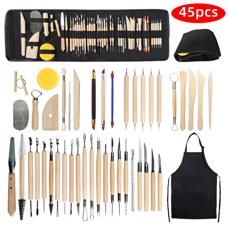Set da 45 pezzi - Contiene la maggior parte degli strumenti per modellare la ceramica, ti consente di utilizzare strumenti diversi per creare molte trame e motivi unici sull'argilla della ceramica. 【Alta qualità】 Punte in acciaio inossidabile, manico in legno duro, non si piega sotto pressione.Resistente e facile da impugnare.Rendi il tuo lavoro più flessibile. 【Design a doppia faccia】Varietà di forme, ideali per intagliare, modellare, tagliare, raschiare, spazzolare, levigare, punteggiatura, goffratura, nail art, ecc. 【Taglie】 Leggero, lunghezza tra 4,8-8,3 pollici. Include custodia in plastica per un comodo trasporto, uso e pulizia. Puoi portarlo ovunque in sicurezza. 【Regalo perfetto】 Questo set di strumenti per scolpire la ceramica può essere il regalo perfetto per chiunque ami giocare con l'argilla, adatto sia ai principianti che agli esperti.