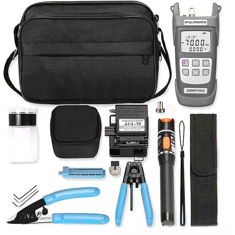 Questo kit di strumenti per la chiusura a freddo in fibra ottica include un misuratore di potenza ottica della batteria a secco, una penna a luce rossa, uno spelafili per fibre a 3 fori, uno spelafili, un fissatore, una mannaia per fibre, una bottiglia, una borsa per penne a luce rossa, corde, 2 nuclei di ceramica, 1 luce rossa testina (standby), custodia per taglierina, chiave di regolazione utensile, carta antipolvere, adattatore. Borsa per attrezzi di grande capacità, resistente e solida, addensata e impermeabile, con una buona durata. Puoi fare una prova. Caratteristiche: Borsa per attrezzi di grande capacità, resistente e solida, addensata e impermeabile, con una buona durata. Misuratore di potenza ottica a batteria a secco, 7 lunghezze d'onda di prova (-70 ~ + 10 dBm di portata), supporta la funzione di accensione/spegnimento del display con retroilluminazione, porte universali da 2,5 mm, illuminazione a LED, con funzione di memoria della lunghezza d'onda. Penna a luce rossa in
