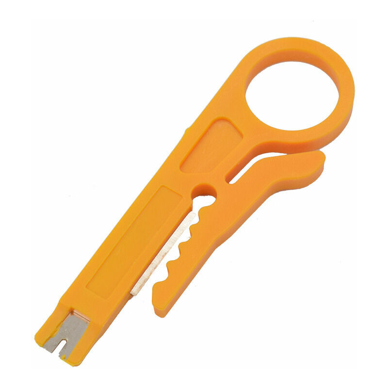 Strumento di posa e spelatura LSA per l'installazione di fili di cavi su scatole di connessione di rete, pannelli di permutazione o campi. Lo strumento aiuta a liberare il cavo di rete dalla guaina esterna e a premere i singoli fili nei terminali LSA . Spelacavi fino ad AWG 22. Molto piccolo e facile da trasportare. Soluzione rapida ed economica per l'installazione in rete. Colore giallo Quantità consegnata: 1 pezzo Per motivi di ripresa, c'è aberrazione cromatica, ma non pregiudicare l'uso