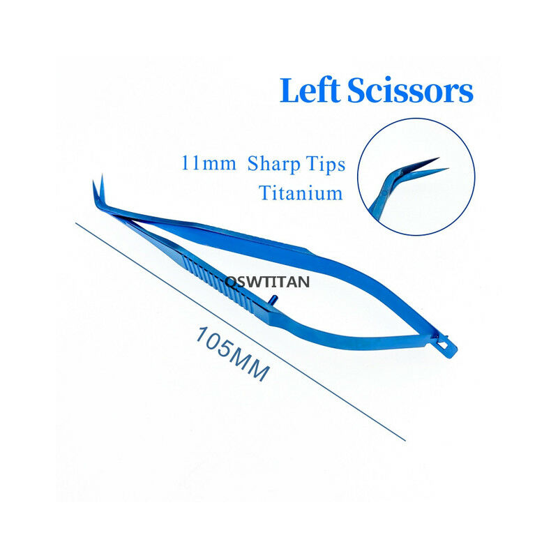 Castroviejo porta Corneale Forbici oftalmica strumento chirurgicoBlunt/punte Taglienti e lama Inferiore0.5mm più lungo la lama superiore, 8mm 11 millimetri forma perno a punta, 105 millimetri lungoTipo: Destra/A sinistra Lista di imballaggio:1pcs (si prega di scegliere)