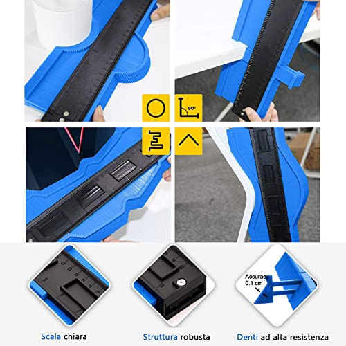 Lo strumento contorno forma viene utilizzato per individuare il contorno o il bordo e trasferirlo con precisione sul materiale da tagliare. Strumento di misura di replica di grandi dimensioni per pavimenti, piastrelle, carpenteria, tubi di avvolgimento, installazione di linoleum, telaio circolare, posa di moquette e carta da parati, pavimenti in vinile o laminato.