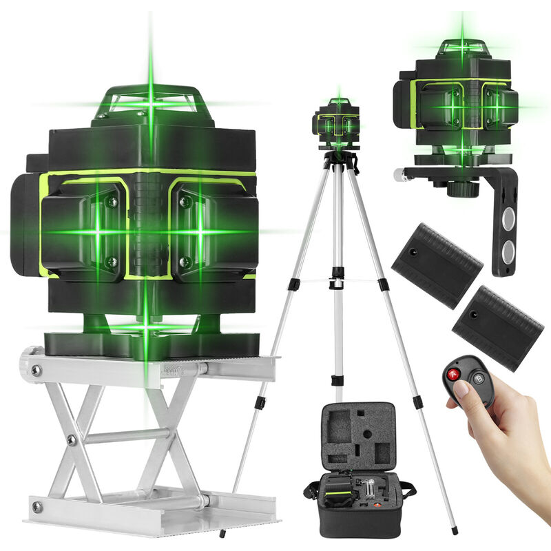 16 linee per un posizionamento più preciso, con sistema di autolivellamento, flessibilità e stabilità. Dotato di display LCD, puoi vedere chiaramente la quantità elettrica rimanente. Autolivellante funzione può conquistare piccoli luoghi aspri come 3°, oltre 3° la luce laser continuerà a lampeggiare per ricordarti di posizionarla su una superficie piana. Funzione di allarme oltre il raggio di sicurezza. Il sistema di compensazione dello smorzamento magnetico garantisce tempi di livellamento rapidi. Nota: Il dispositivo di uscita laser si trova sul foro di uscita. Si prega di non lasciare che la linea laser colpisca direttamente gli occhi. Non smontare lo strumento ed eseguire riparazioni interne da soli. Questo strumento soddisfa lo standard di valutazione della sicurezza delle radiazioni laser. Specifiche: Nome: livello laser Materiale principale: metallo plastico Batteria: 2 * batteria al litio ricaricabile, 3,7 V, 3000 mAh (inclusa, troverai due batterie 18650 all'interno se ne