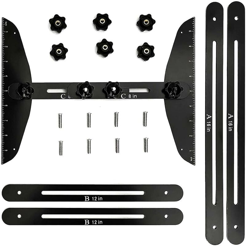 Strumento per gradini per scale che fa risparmiare tempo - : il set di modelli per gradini per scale ti aiuterà facilmente a disporre perfettamente pedate, alzate e scaffali. Migliora la precisione e risparmia tempo senza pagare di più per gli errori. Facile da usare e regolare all'angolazione corretta. Portatile e semplice. [Uso flessibile] Lo strumento per misurare il gradino delle scale viene fornito con tre dimensioni di aste di estensione da 8 e 12 e 16 pollici che possono essere fatte scorrere e regolate da 10,2 a 53,3 pollici. Le piastre in acciaio inossidabile da 10 pollici su entrambi i lati hanno scala e misurazione dell'angolo (da 0 a 360), che possono essere allungate in qualsiasi combinazione in base alle proprie esigenze per soddisfare la misurazione di diversi angoli. Il righello per scale è facile da regolare e si blocca saldamente in posizione con quattro manopole. [Materiale di alta qualità] Gli strumenti per scale sono realizzati in acciaio inossidabile di alta