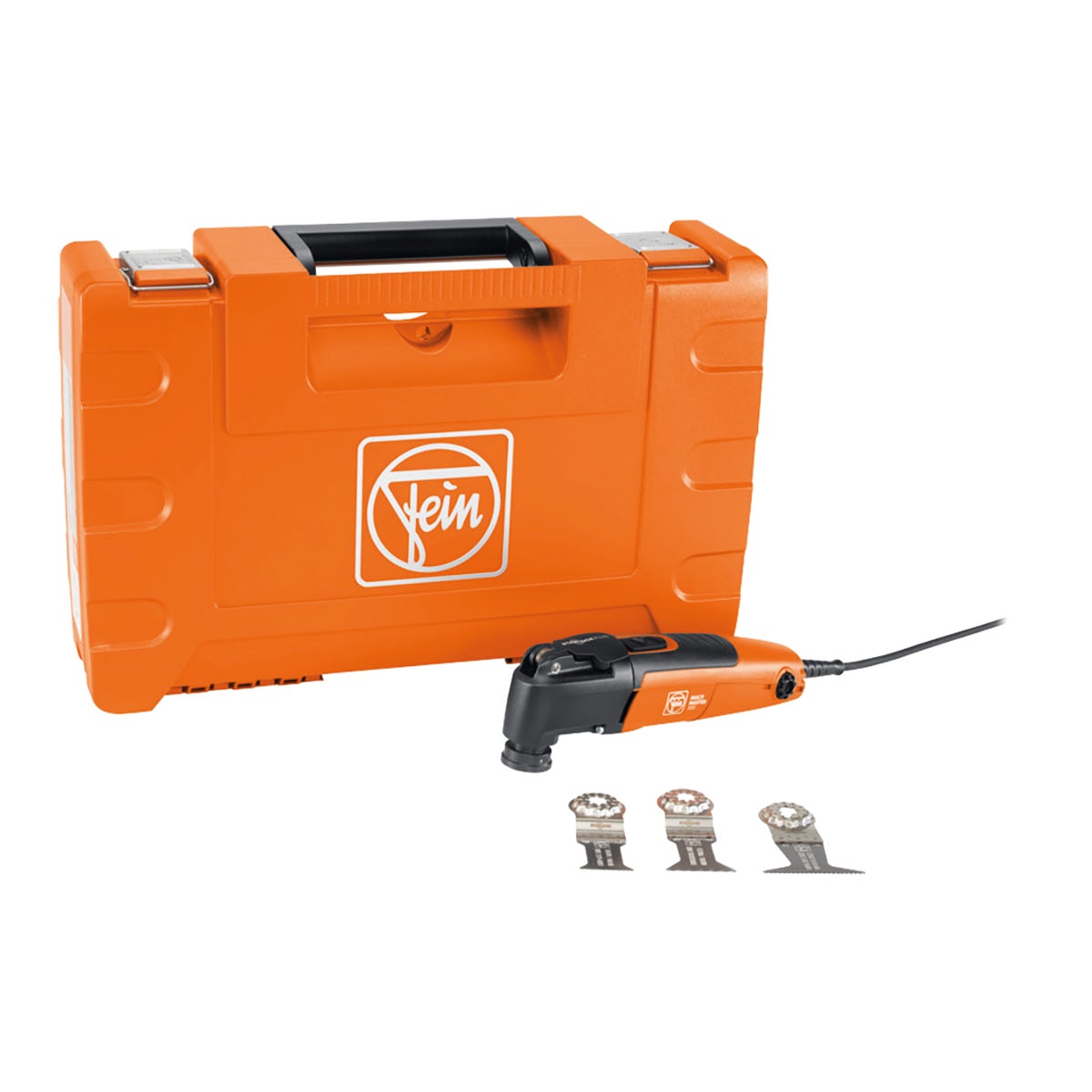Utensile ad oscillazione - MULTIMASTER MM 300 Plus Start. |L'efficace utensile multifunzione per operazioni di ristrutturazione e rinnovo con dotazione di base per il taglio di legno, metalli, cartongesso e plastica.. Il nostro modello di base vi offre un' ampia gamma di applicazioni per ristrutturazioni e rinnovo d'interni.. Attacco portautensile StarlockPlus: maggiore velocità di lavorazione e precisione grazie a una trasmissione della forza al 100%.QuickIN: sostituzione dell'utensile in meno di 3 secondi grazie al sistema di serraggio rapido senza chiavi di servizio brevettato FEIN. Grazie all'attacco portautensile StarlockPlus avete accesso a circa 100 accessori FEIN delle classi di potenza Starlock e StarlockPlus.. Regolazione elettronica in continuo del numero dei giri.. Motore FEIN da 250 W: motore resistente ai sovraccarichi con elevata percentuale di rame per una maggiore potenza e una lavorazione efficace.