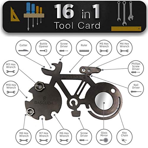 Strumento multiuso 16 in 1 Gadget piccolo strumento di sopravvivenza all'aperto Forma di bicicletta - accessori da campeggio | Regalo multitool per uomini e ciclisti | Accessori per biciclette da uomo