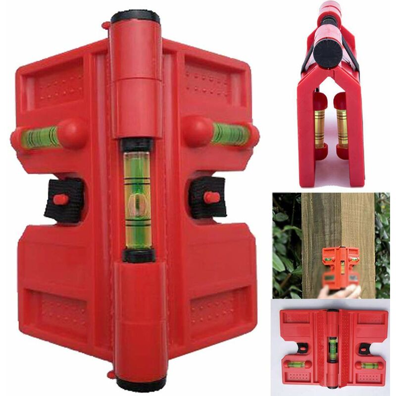 Tre livelle (due orizzontali, una verticale) - ideali per applicazioni che richiedono un livellamento verticale o orizzontale. Facile da usare: quattro magneti per superfici metalliche, elastici per fissare superfici metalli non ferrosi come . B. Pali di recinzione in legno, fissaggio ad angolo per tubi. Plastica ABS;