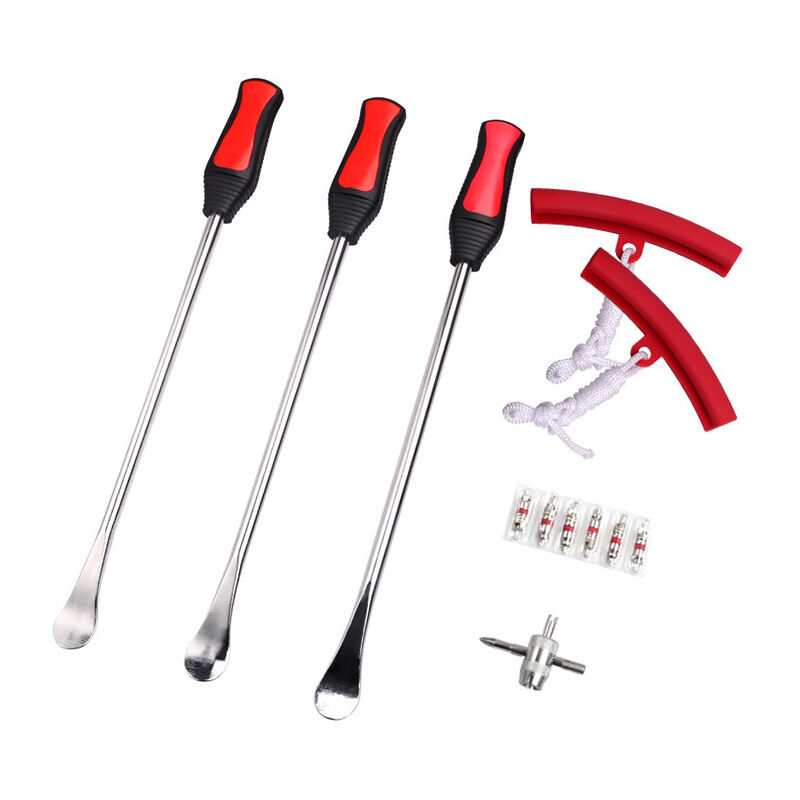 Include: 3 cucchiai a leva e 2 bordi protettivi Adatto per: Adatto per auto, moto, biciclette, ecc. Cambia facilmente le gomme di auto, moto, biciclette Dimensioni: lunghezza dello stelo del pneumatico - 29,5 cm, 2 lunghezze della protezione del cerchione - 15 cm Materiale: pneumatico in acciaio inossidabile pala, molto resistente. solida, antiruggine, antitorsione