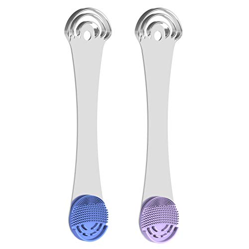 Strumento per la Pulizia del Raschietto per Lingua 2 in 1 con Spazzola in Silicone, 100% Acciaio Inossidabile, Facile da Usare e da Pulire, 2 Piece