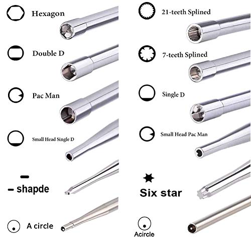 Il kit di strumenti di regolazione del carburatore da 12 pezzi viene fornito con strumento scanalato a 21 denti + a 7 denti + singolo D + testa piccola singola D + doppio D + Pac Man + testa piccola Pac Man + esagonale + forma A circolare + strumento piccolo circolare ad A, sei stelle, per regolare facilmente il tuo piccolo motore a 2 cicli