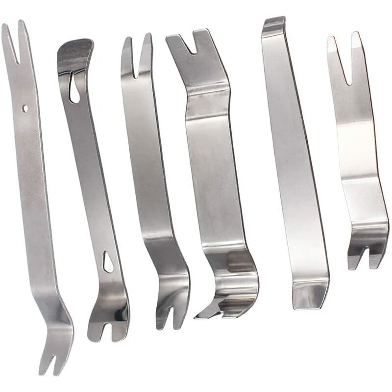 Contenuto del pacchetto: 6 leve in acciaio inossidabile di varie dimensioni. Rimuove facilmente finiture, modanature, pannelli delle portiere e cruscotti. Il design unico consente l'accesso sotto il rivestimento per rimuovere correttamente la parte, nel punto di attacco.< /p> Set di strumenti versatile che si ripaga con un solo utilizzo;