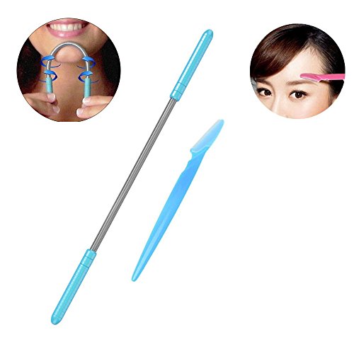 Strumento di rimozione dei capelli facciali Threading set DIY Quick Smooth efficace strumento filettatura 2 pezzi include beauty pinzette e sopracciglia Razor allontanare barbe con senza ceretta by Ealine pack of 2