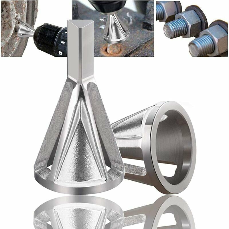 Acciaio duro super resistente: realizzato in acciaio inossidabile estremamente duro con elevata resistenza e tenacità per una maggiore durata, antiruggine e anticorrosione. Può accompagnarti per molto tempo. Sicuro ed efficiente: lo strumento per smussatura esterna ad alta resistenza e durezza rade facilmente i bordi esterni di un bullone, un tubo o un'asta, rimuove le sbavature. Ripara rapidamente i bulloni danneggiati e serra i dadi in posizione senza ferirti la mano, senza scintille o ustioni;