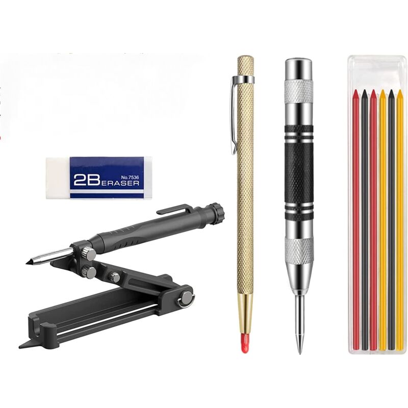 Regolazione multifunzione - : puoi cambiare la forma a tuo piacimento, basta cambiare la forza del portapenne e del dado per ottenere forme diverse per soddisfare le tue esigenze. Si blocca in posizione dopo ogni regolazione per una maggiore precisione. 【Materiale di alta qualità】: il corpo della penna in legno è realizzato in plastica ABS di alta qualità. È forte e durevole. Il contenuto principale è 2B, con tracciabilità, più difficile. Con un temperamatite, è una matita da costruzione ideale per altre discipline come architettura, muratura, lavorazione del legno, ecc. 【Strumento per incisione dei metalli】: punta in metallo duro con pratica clip da tasca per un facile trasporto, il cappuccio in carburo di tungsteno protegge mancia quando non in uso;