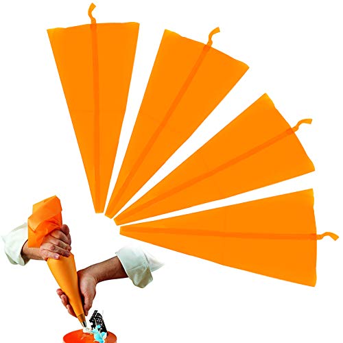 Strumento di DIY del supporto del sacchetto della pasticceria della crema della torta del gel di silicone riutilizzabile Strumento di DIY decorato colore arancione (4pcs Sacchetto di pasticceria)