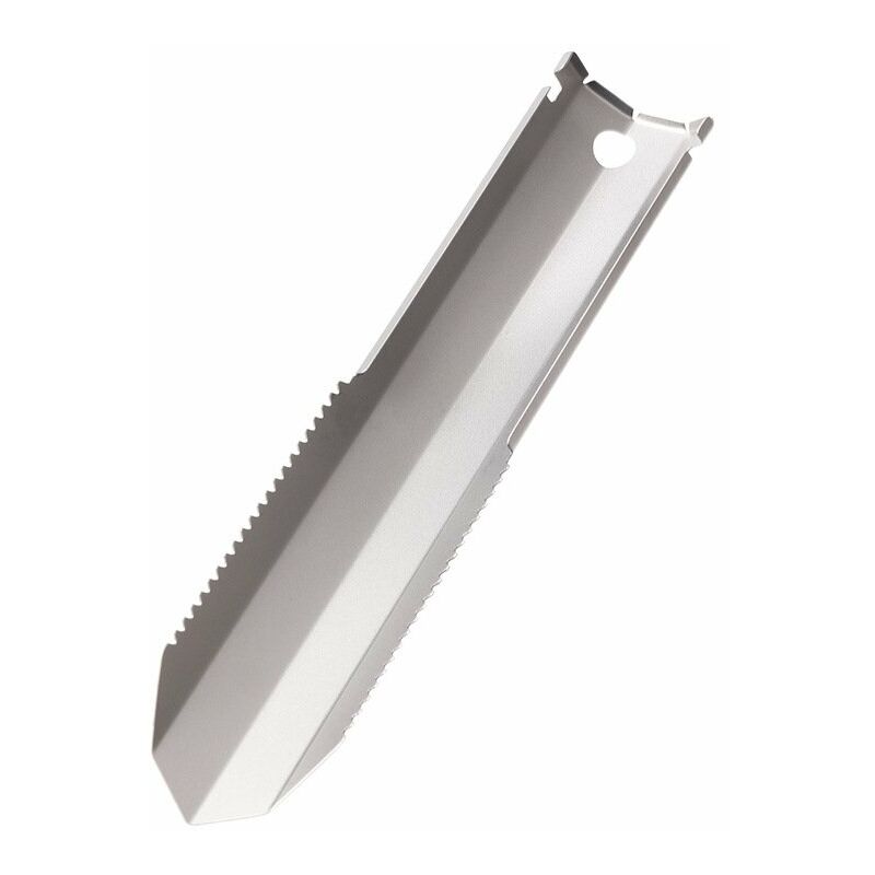 Realizzato in titanio resistente e leggero Design ergonomico per uno scavo facile ed efficiente La lama seghettata taglia il terreno duro e le radici Maneggia il laminato confortevole p>