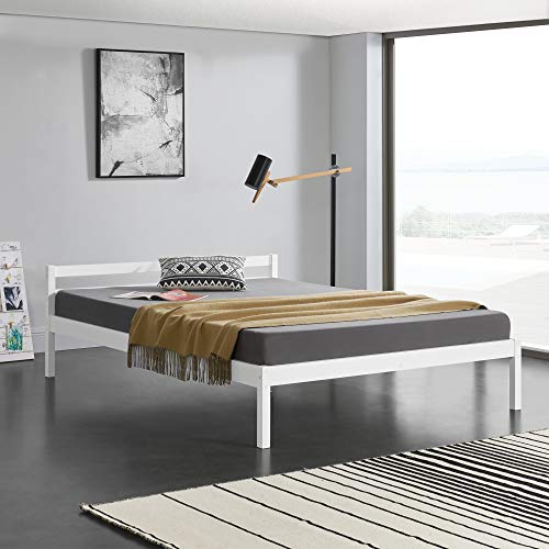En.casa - Struttura Letto Matrimoniale King Size 180 x 200 cm Letto Doppio in Legno di Pino con Rete a Doghe - Bianco