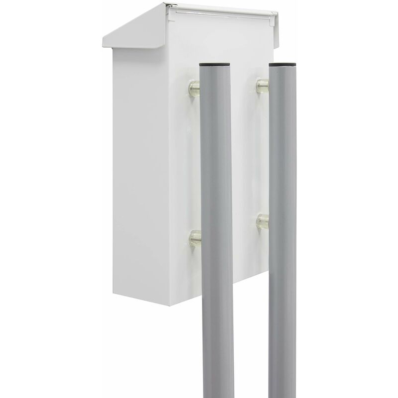 Supporto a terra ARREGUI STT02, paletti per cassette postali Arregui. Compatibile con i seguenti modelli di cassette postali Arregui: Compact, Deco, Dime, Figure, Home, Line, Plate, Premium, Premium Graphic, Premium Maxi, Smart, Smart Graphic, Tondo, Urban, Villa, Visit, Zaguán. Soluzione per case dove non c'è posto per fissare la cassetta della posta al muro o al cancello. Il supporto è costituito da due pali cilindrici che si fissano ai fori posteriori della cassetta postale mediante viti (incluse nella confezione). I gommini da posizionare tra i pali e la cassetta della posta impediscono l'attrito diretto tra i due elementi (inclusi nella confezione). I pali sono in acciaio, molto resistenti agli agenti atmosferici e durevoli, progettati per essere installati all'esterno. Sono di colore grigio argento, quindi si abbinano con qualsiasi tipo di cassetta postale. È necessario un piccolo lavoro edile per ancorare i pali a terra. Si raccomanda di fare un buco profondo 30 cm, da riempire