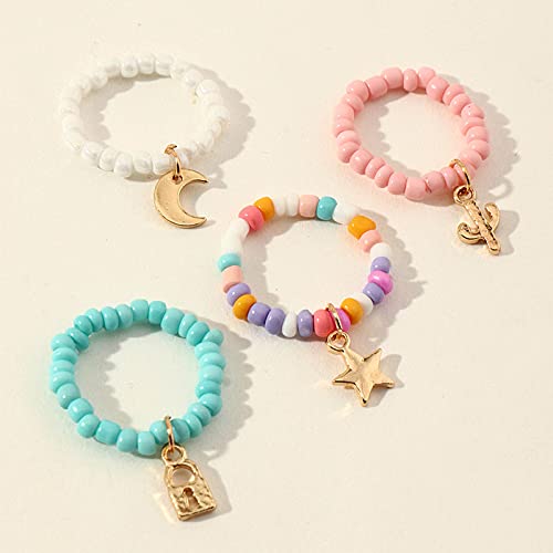 Sttiafay Set di anelli in resina impilabili con perline colorate con ciondolo a forma di stella lunare, regalo regolabile per donne e bambini