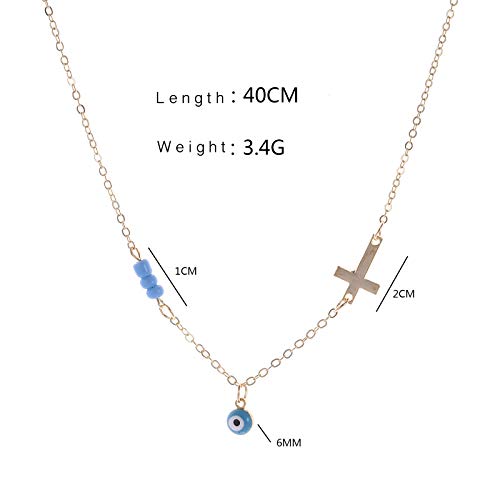 Sttiafay - Collana con ciondolo a forma di occhio malvagio, con ciondolo a forma di croce, con perle turchesi, per donne e ragazze