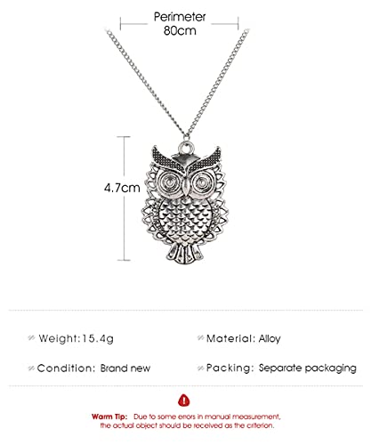 Sttiafay - Collana con ciondolo a forma di gufo, stile vintage, con catenina lunga, in argento, per donne e ragazze